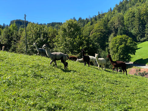 2014 starteten wir mit 4 Stuten und bereits im ersten Sommer kamen die ersten 2 Fohlen zur Welt. Die Freude war riesig und seit da an vergrösserte sich unsere Herde jedes Jahr. Zur Zeit sind auf unserem Hof zwischen 15 und 20 Alpakas.